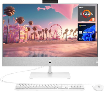 HP Pavilion 27” FHD Display All-in-One DesktopAMD Ryzen 5 5500U 16GB RAM 1TB SSD Wi-Fi 6 Webcam HDMI Wired KB & Mouse Windows 11 Home White